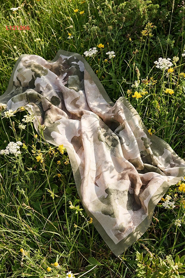 شال مويسكارف بريم د'amour من حرير فرنسي بنقشة ناعمة باللون الأخضر الفاتح