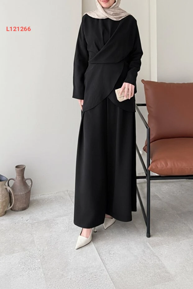 استمتعي بأناقة لا تضاهى مع طقم Molly Nelly، الذي يتكون من بنطلون واسع وبلوزة مصنوعة من قماش المودال الفاخر. يجمع هذا الطقم بين الراحة والموضة، مما يجعله خيارًا مثاليًا لمناسباتك اليومية أو الخروج مع الأصدقاء. مع تصميمه الأنيق وقصته المريحة، ستحصلين على مظهر عصري ملفت يبرز أنوثتك.