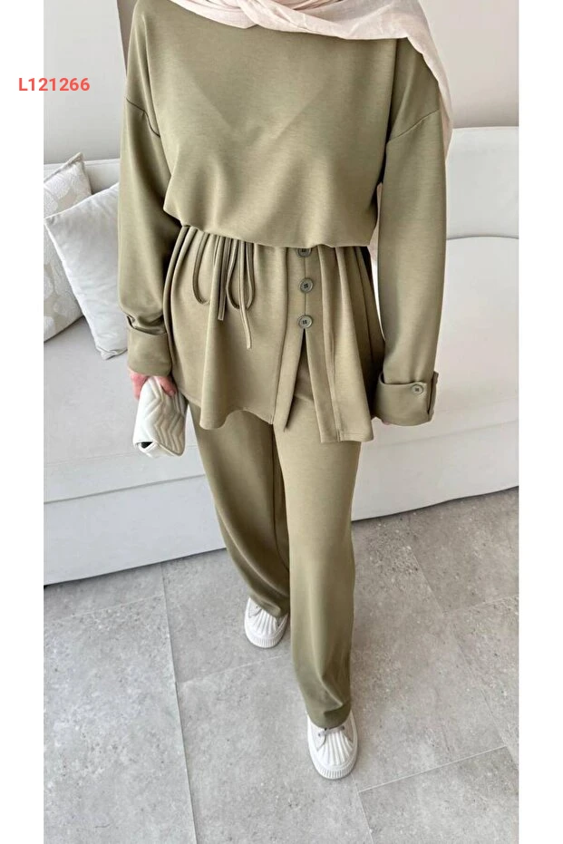 اكتشفي أناقتك مع طقم Molly Nelly الذي يتضمن بلوزة وسروال فضفاض مزود بأزرار، حيث يجمع بين الراحة والأناقة في تصميم واحد. مصنوع من أقمشة خفيفة تسمح لك بالحركة بحرية، ويضفي مظهرًا عصريًا يناسب جميع المناسبات. ارتدي هذا الطقم لتكوني نجمة كل حضور!