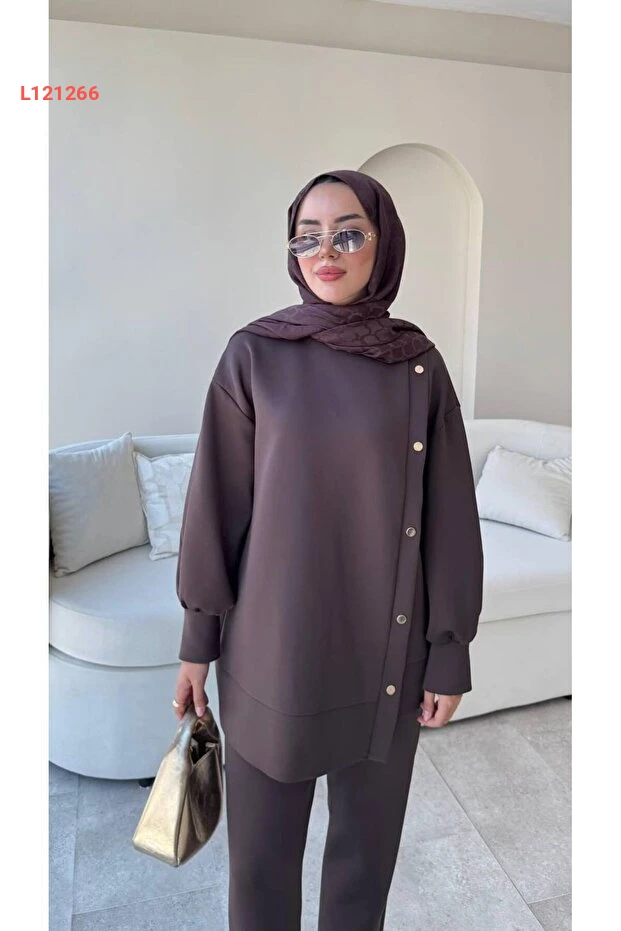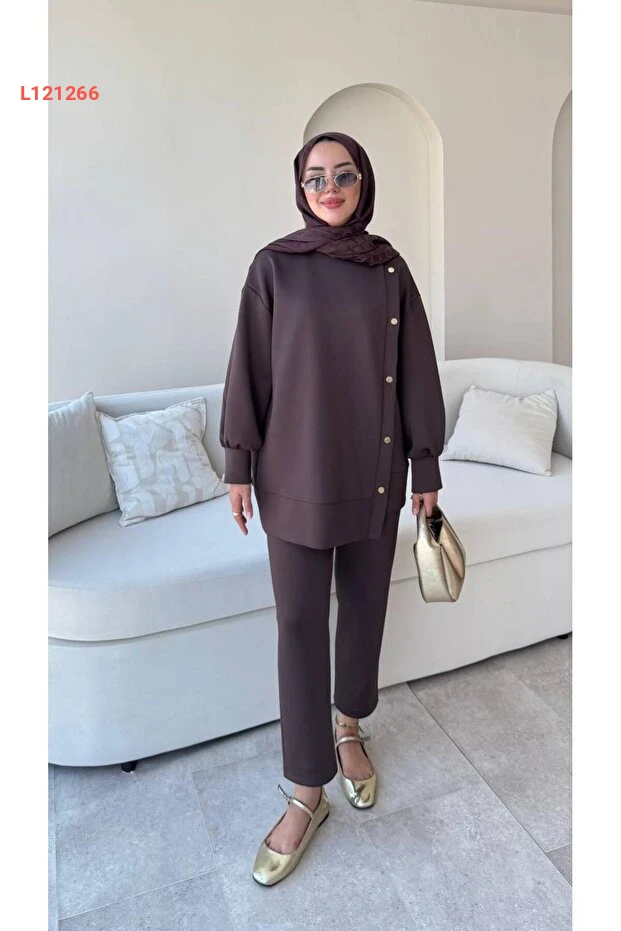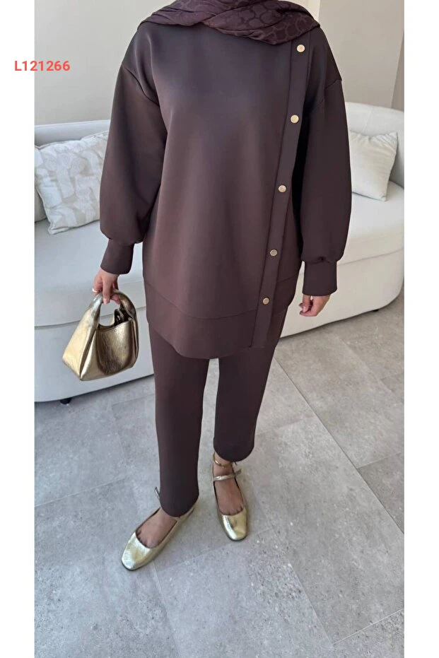 مجموعة ملابس محتشمة من بنطلون سكوبا مع أزرار جانبية - مولي نيلي