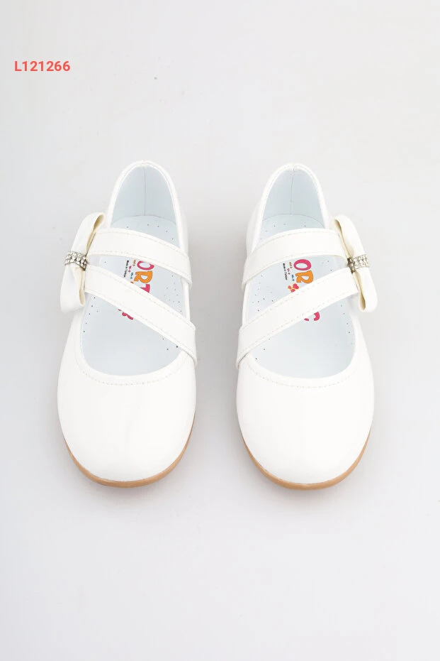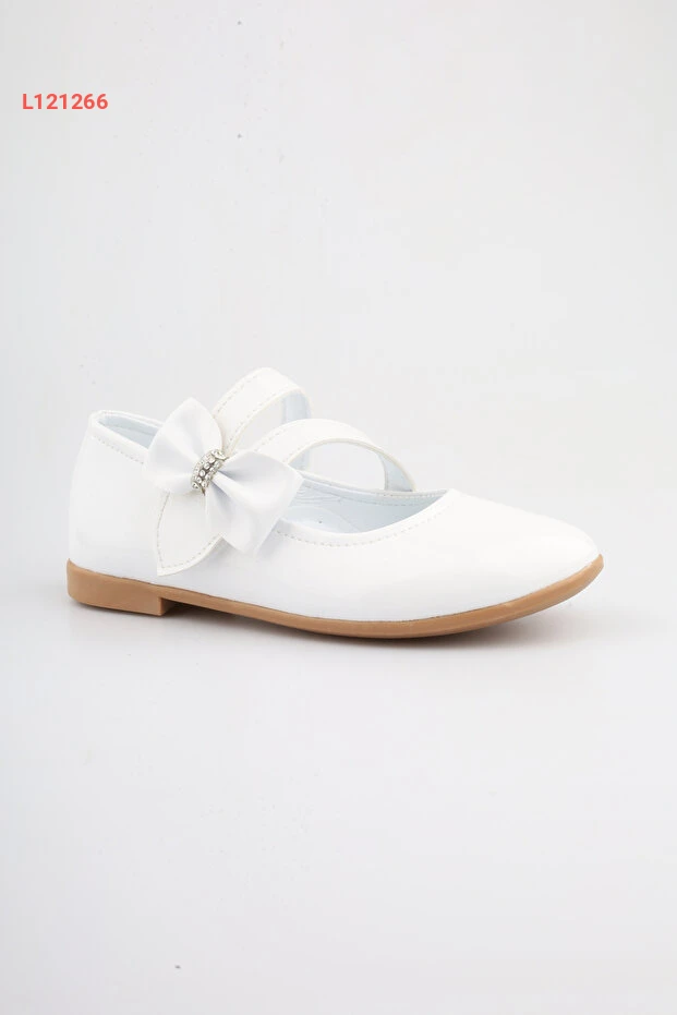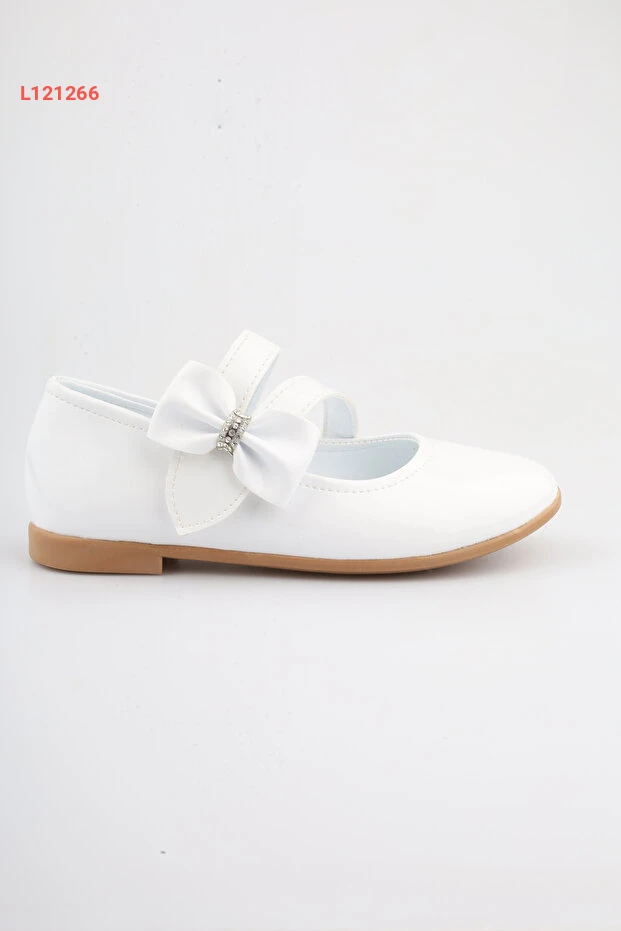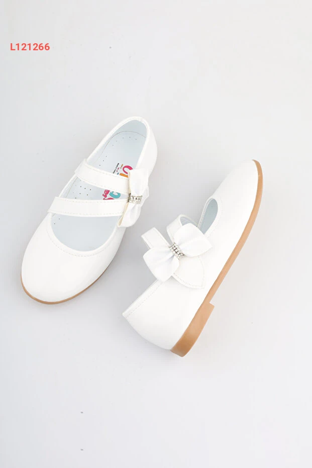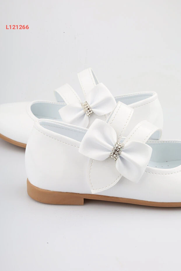 أحذية بابيت بيضاء مزينة للفتيات بالأقواس وكعب طبي