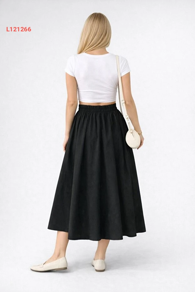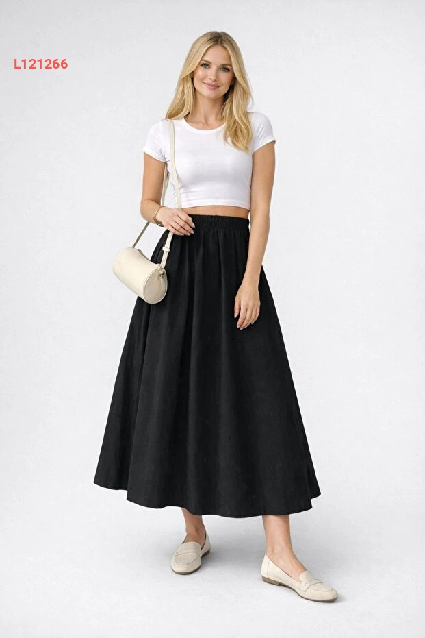 استمتعي بأناقة لا مثيل لها مع تنورة "mor butik" السوداء ماكسي، المصنوعة من قماش مزدوج عالي الجودة يمنحك الراحة والمرونة في كل حركة. تصميمها العصري بقصة مريحة وحزام مطاطي يضمن تناسقًا مثاليًا مع إطلالاتك المختلفة، مما يجعلها خيارًا مثاليًا لأيامك الكاجوال والمناسبات الخاصة.