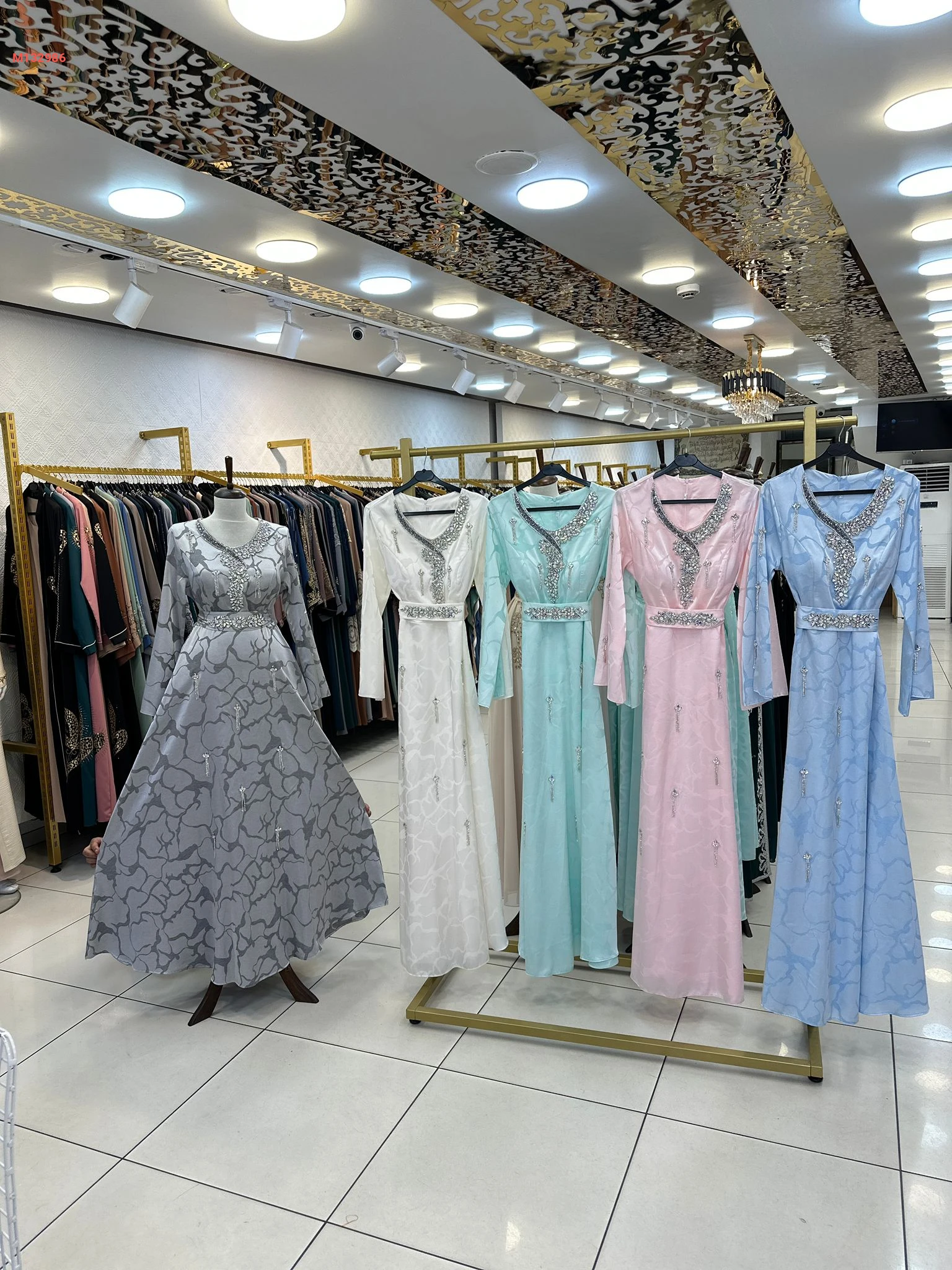 قفطان مغربي مع حزام بياقة مرصعة بالكريستال مزين بالسلاسل