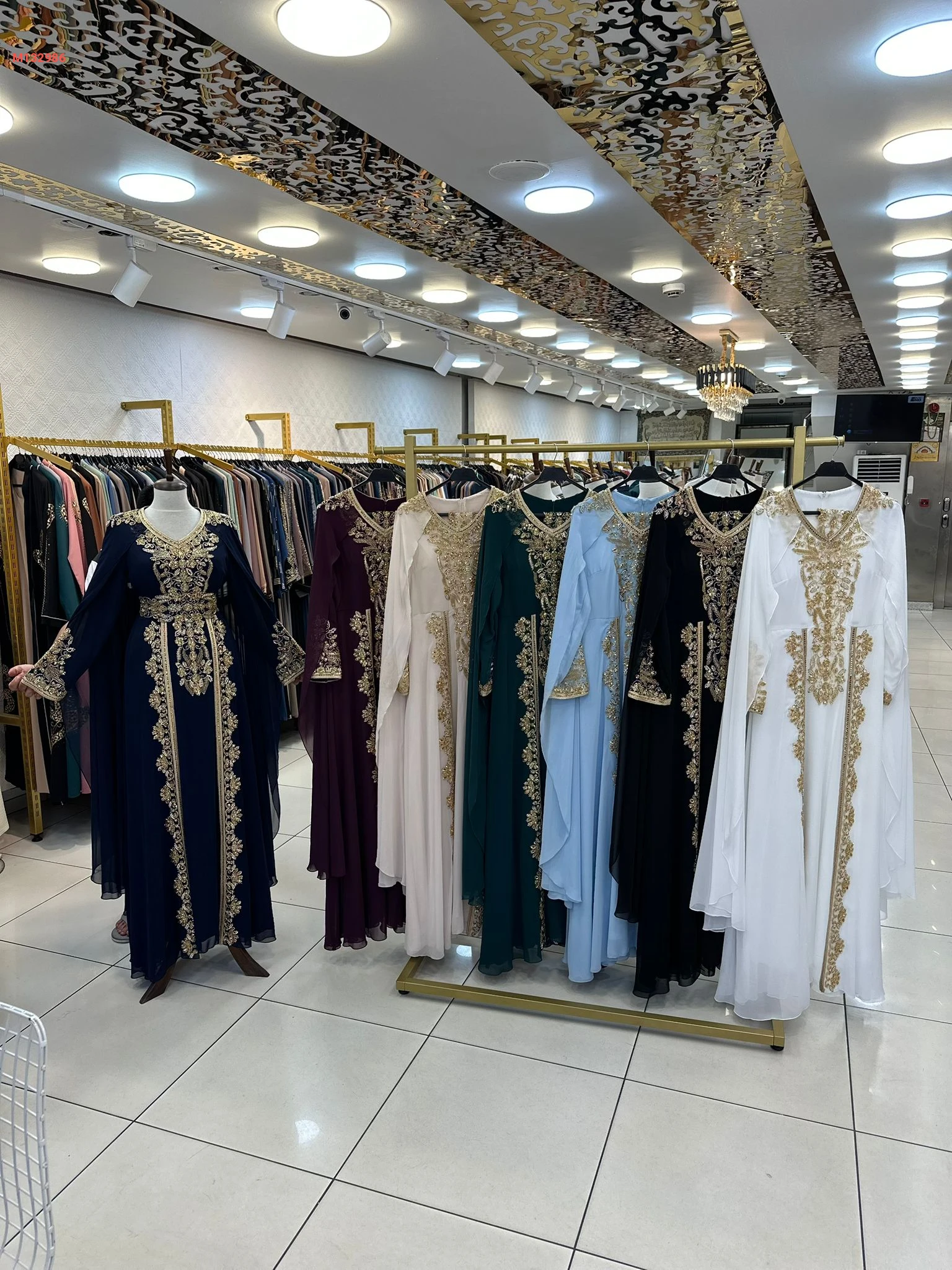 قفطان مغربي بأكمام شيفون مفتوحة ، تطريز ذهبي مع حزام