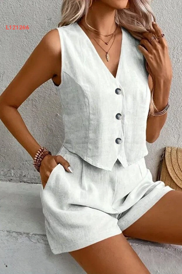 استمتع بالأناقة والراحة مع مجموعة Mossta الكتان القابلة للتكيف! تأتي هذه المجموعة المكونة من شورت خالي من الأكمام وبتصميم عصري وباللون الأبيض الجذاب، مما يجعلها الخيار المثالي لفصل الصيف. مع جيوب عملية، يمكنك حمل أغراضك الأساسية بسهولة أثناء تنقلك، مما يضيف لمسة عصرية ومريحة لمظهرك اليومي.