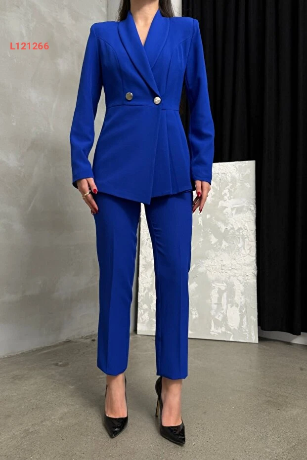 استمتعي بأناقة لا تُضاهى مع مجموعة blazer والسروال الثنائية من علامة MSM Fashion. يتميز التصميم الأنيق بتفاصيل رائعة من الطيات والأزرار، مما يمنحك مظهرًا متجددًا وفريدًا في كل مناسبة. مع أرجل ضيقة تعزز من جاذبية إطلالتك، ستكونين دائمًا محط الأنظار.