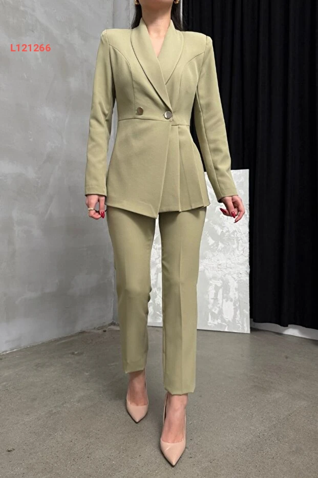 بدلة عصرية للنساء من MSM فاخرة بتفاصيل طيات وأزرار