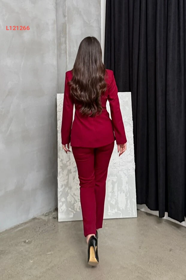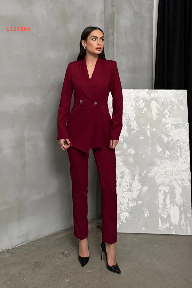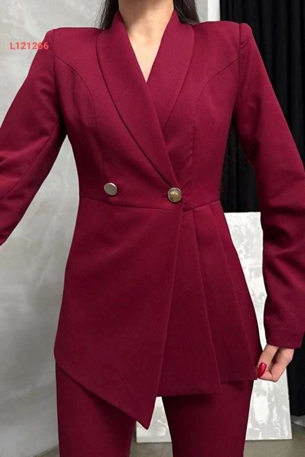 طقم بليزر وسروال نسائي بتفاصيل ثني وزر من MSM فاشن