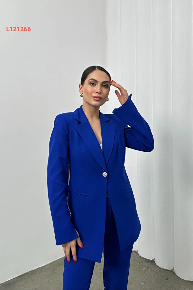 اكتشفي أناقتك مع طقم MSM Fashion المكون من blazer وبنطال أنيقين. يتميز بتفاصيل الأحجار اللامعة وقصة السروال الضيق التي تضفي لمسة عصرية على إطلالتك، مما يجعله مثالياً لمختلف المناسبات. اجعلي هذا الطقم خيارك الأمثل لتعزيز ثقتك وجاذبيتك.