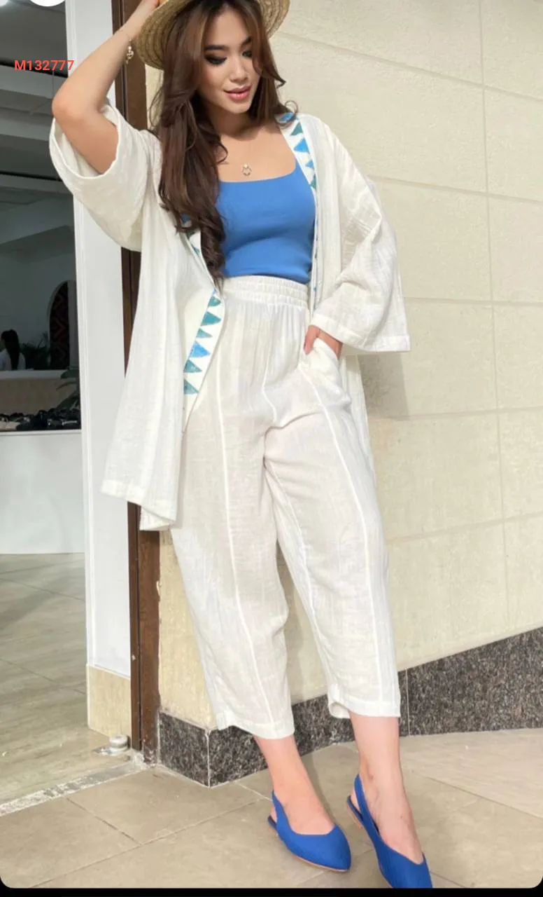 طقم بنطال موسلين مع كيمون