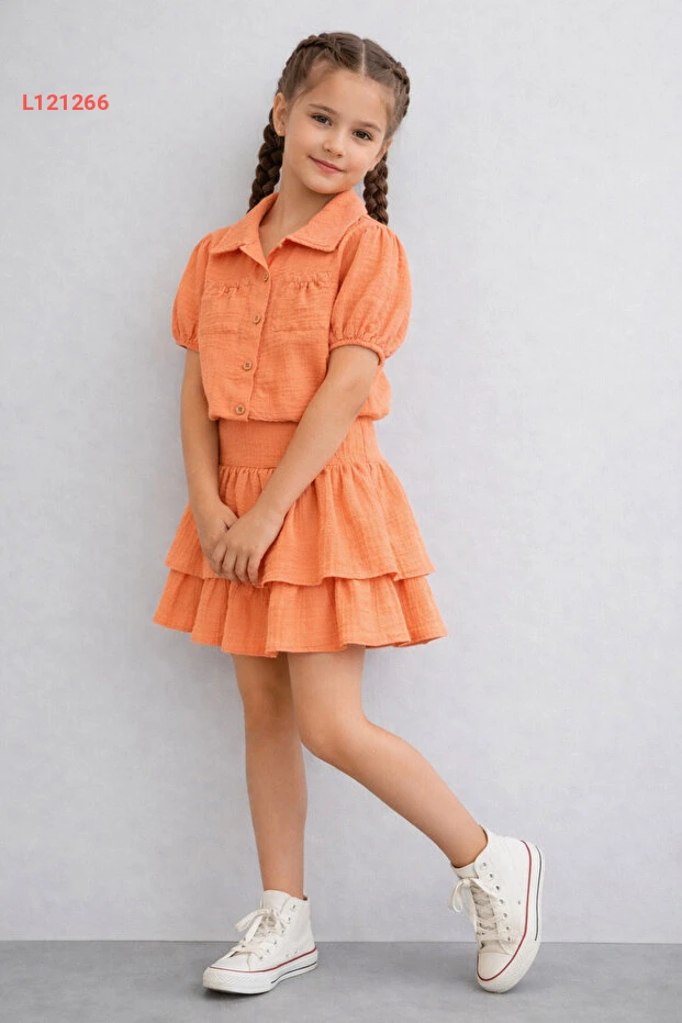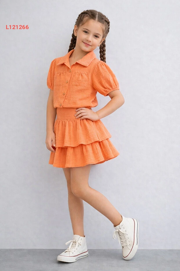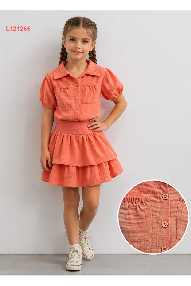 عالم طفلتي: طقم تنورة وقميص من موسلين للبنات (2-8 سنوات)
