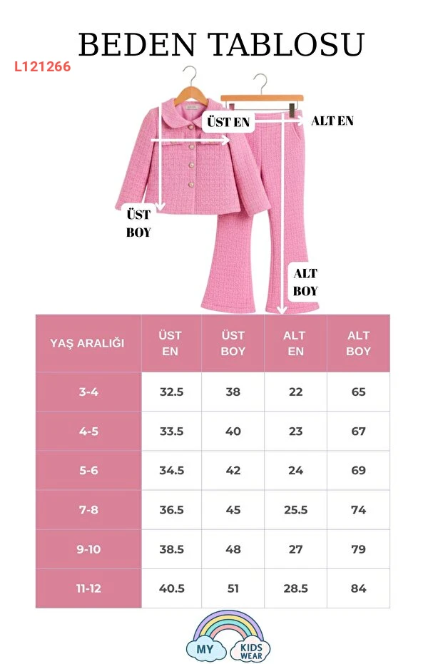 بدلة العيد للفتيات من ماى كيدز – جاكيت توفيت وسروال واسع 12549