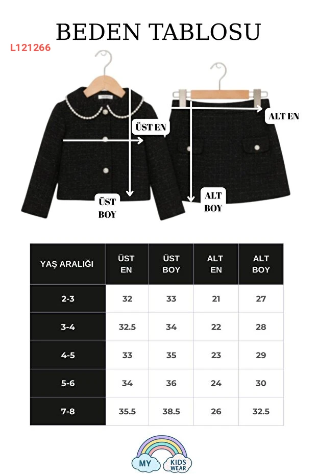 أضيفي لمسة من الأناقة إلى خزانة ملابس ابنتك مع طقم My Kids Wear المميز! يتميز هذا الطقم بتصميمه الرائع مع تفاصيل اللؤلؤ الجميلة وقماش التويد الفاخر، مما يجعله الخيار المثالي للاحتفالات والمناسبات الخاصة. احصلي على إطلالة تجمع بين الراحة والأناقة لتتألق بها في كل مناسبة!