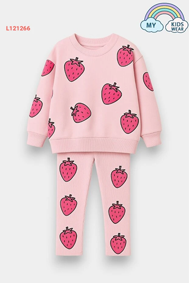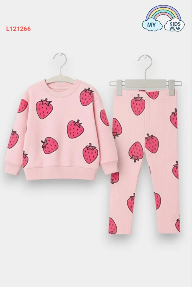 مجموعة سويت شيرت وبنطال ضيق الفراولة للأطفال من 2 إلى 10 سنوات