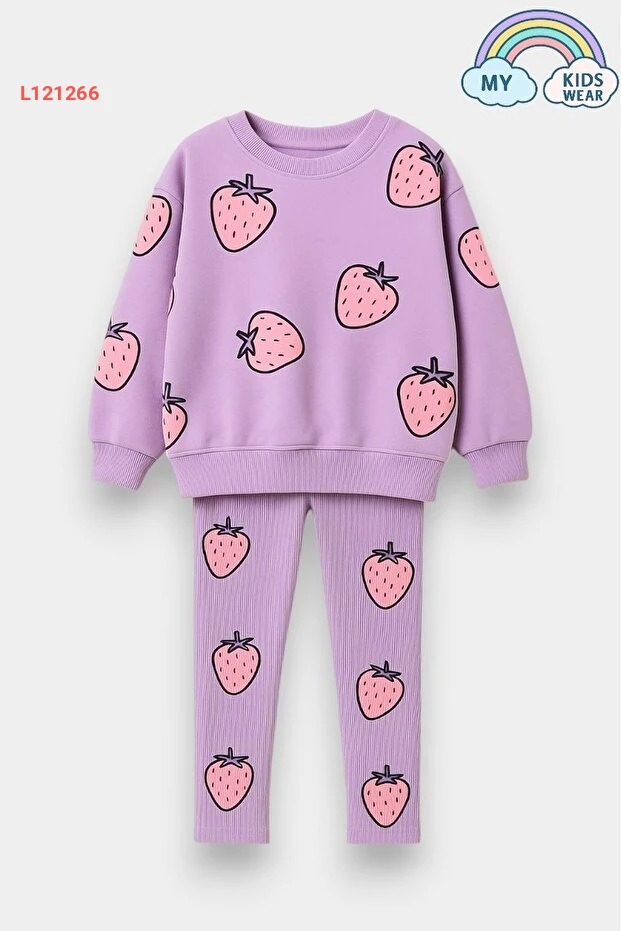 مجموعة سويت شيرت وتايور بنقشة الفراولة للأطفال من 2-10 سنوات