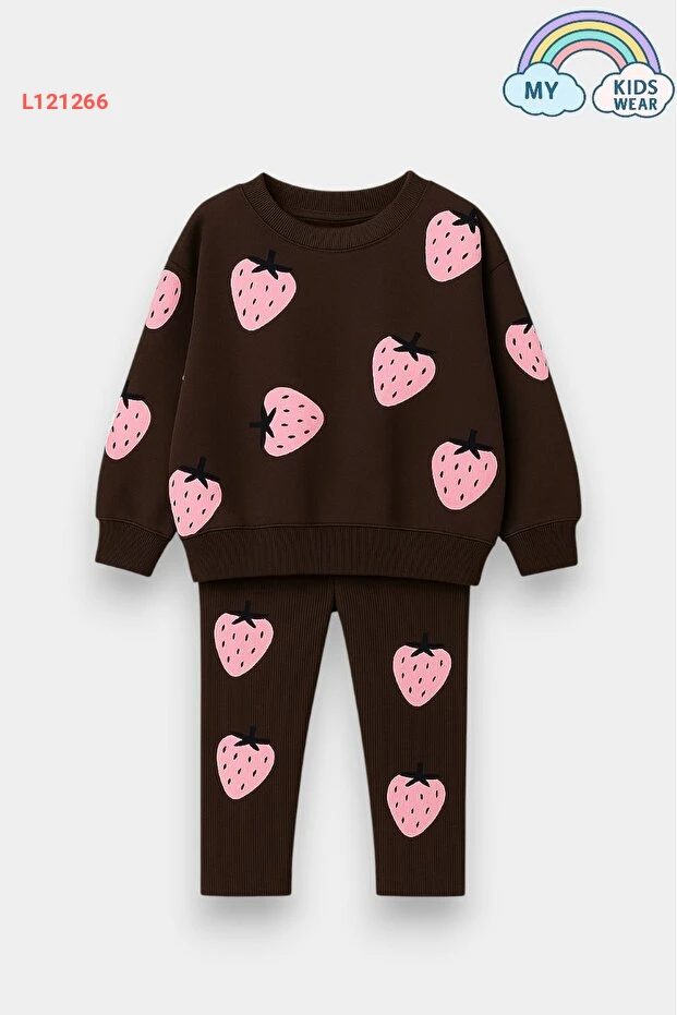 طقم بلوزة وسروال رياضي للأطفال من My Kids Wear بتصميم فراولة مناسب للأطفال من 2-10 سنوات