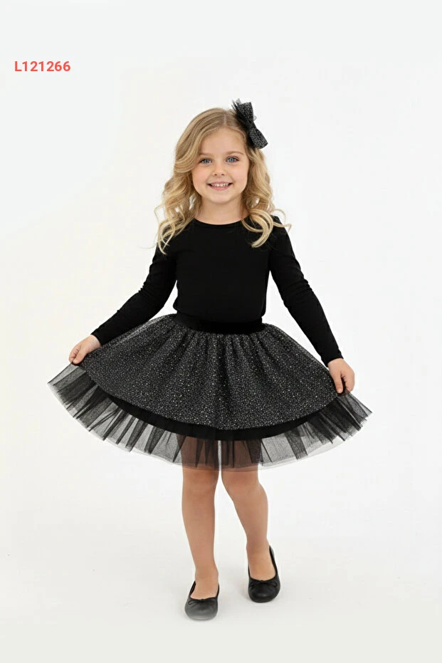 اجعل كل مناسبة مميزة مع تنورة "ما ميس أرمينا" السوداء اللامعة للفتيات! تتميز بتصميمها الأنيق والحديث مع طبقات من التول، مما يمنح فتاتك مظهرًا رائعًا وجذابًا في حفلات عيد الميلاد، الزفاف، أو أي احتفال آخر. مثالية لإضفاء لمسة من السحر على كل لحظة، فهي تجمع بين الراحة والأناقة لتكون خيارًا مثاليًا لكل المناسبات.