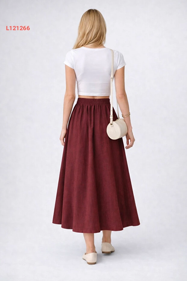 استمتع بأناقة لا مثيل لها مع تنورة "مور بوتيك" النسائية بلون بورغندي، المصنوعة من قماش مزدوج عالي الجودة يوفر لكِ راحة استثنائية. تصميمها ذات الخصر المطاطي يضمن لكِ ملاءمة مثالية، سواء كنتِ في حديقة أو في مناسبة خاصة، مما يجعلها الخيار المثالي لكل إطلالة.