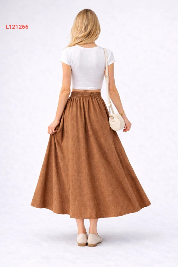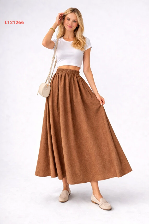 استمتعي بأناقة لا مثيل لها مع تنورة Maxi من Mor Butik بلونها البني الفاتح الجذاب! مصنوعة من قماش مزدوج يجمع بين الراحة والأناقة، تتميز هذه التنورة بقصتها الواسعة وحزامها المطاطي الذي يضمن لكِ الشعور بالراحة خلال اليوم. ارتديها في المناسبات أو كجزء من إطلالتك اليومية لتضفي لمسة من الأناقة على كل مظهر.
