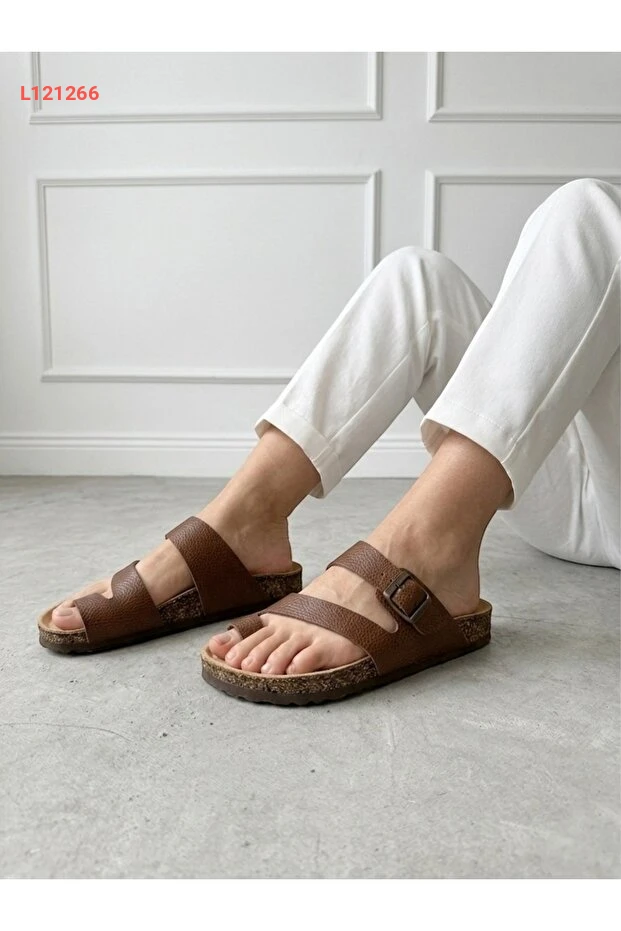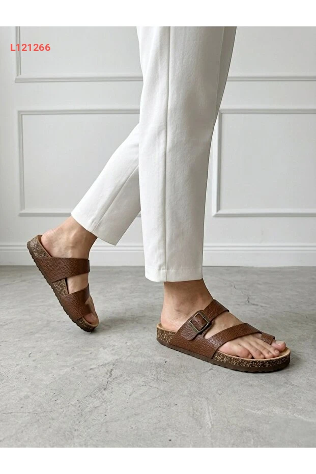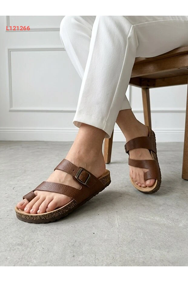 صندل مايكرني جلد طبيعي للجنسين - صندل ذو فرجة بخصائص طبية وقاعدة من الفلين