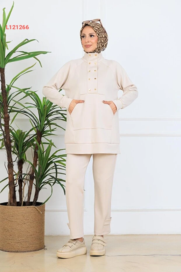 استمتع بالأناقة والراحة مع طقم Mymood ذو الياقة الشامخة، الذي يجمع بين التصميم العصري والخامات الفاخرة. يأتي الطقم بنمط مميز يبرز جمالك ويمنحك شعوراً بالثقة في كل مناسبة، مع سهل الحركة وملائمة مثالية تعكس أسلوبك الشخصي.