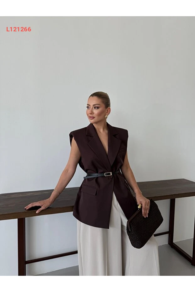 سترة فاخرة بتصميم فضفاض من نادرينا ذات حزام ذهبي وودّ بجودة عالية