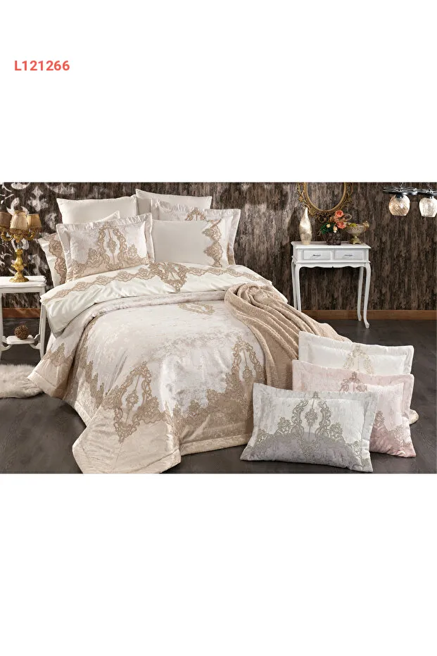 استمتع بأقصى درجات الراحة والأناقة مع مجموعة NAKIŞHAN Monalisa لعشاق التصميم وذوق الفخامة. تتكون هذه المجموعة المكونة من 10 قطع من ألوان الكابوتشينو الدافئة، مما يضفي لمسة ساحرة على غرفة نومك، بينما تضمن لك الأقمشة العالية الجودة نومًا هنيئًا وراحة تدوم طويلاً. اجعل لحظاتك الليلية أكثر تميزًا مع هذا السرير المريح الذي يعكس الذوق الرفيع.