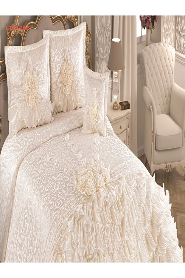 استمتع بأجواء السحر والفخامة في غرفة نومك مع طقم أغطية السرير NASHOME TEKSTİL. يتكون هذا الطقم من 4 قطع أنيقة، مصمم بأسلوب رومانسي جذاب، مما يضفي لمسة من الفخامة على ديكورك. اجعل كل ليلة مميزة ومرحة مع لمساتها الناعمة وجودتها العالية.