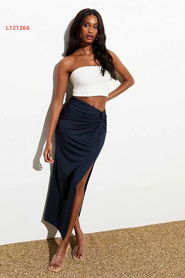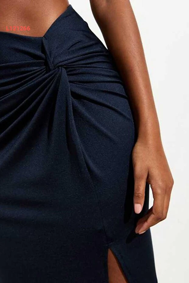 تنانير ماكسي زرقاء داكنة بحزام قابل للتعديل وفتحات جانبية SH160