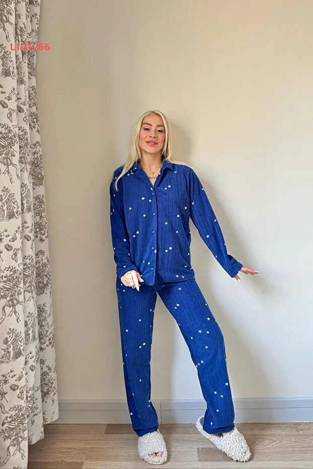 استمتع بأقصى درجات الراحة مع طقم البيجاما Pijamaevi بلون الأزرق الداكن وتصميم القمر الجذاب. مصنوعة من الفانيلا الناعمة، تضمن لك الراحة والدفء في ليالي الشتاء الباردة، بينما تضيف الأزرار الأمامية لمسة من الأناقة العصرية. اجعل كل لحظة من لحظات الاسترخاء مميزة مع هذا الطقم الرائع!