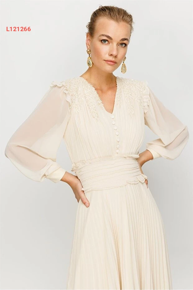 تألقي بستايل فريد مع فستان Nefeli İşleme Detay! يتميز هذا الفستان بتفاصيله الرائعة والحرفية العالية، مما يجعله الخيار المثالي للمناسبات الخاصة. مصمم ليبرز أنوثتك، يوفر لك الراحة والأناقة في آن واحد، مما يجعلك نجمة كل حفلة!