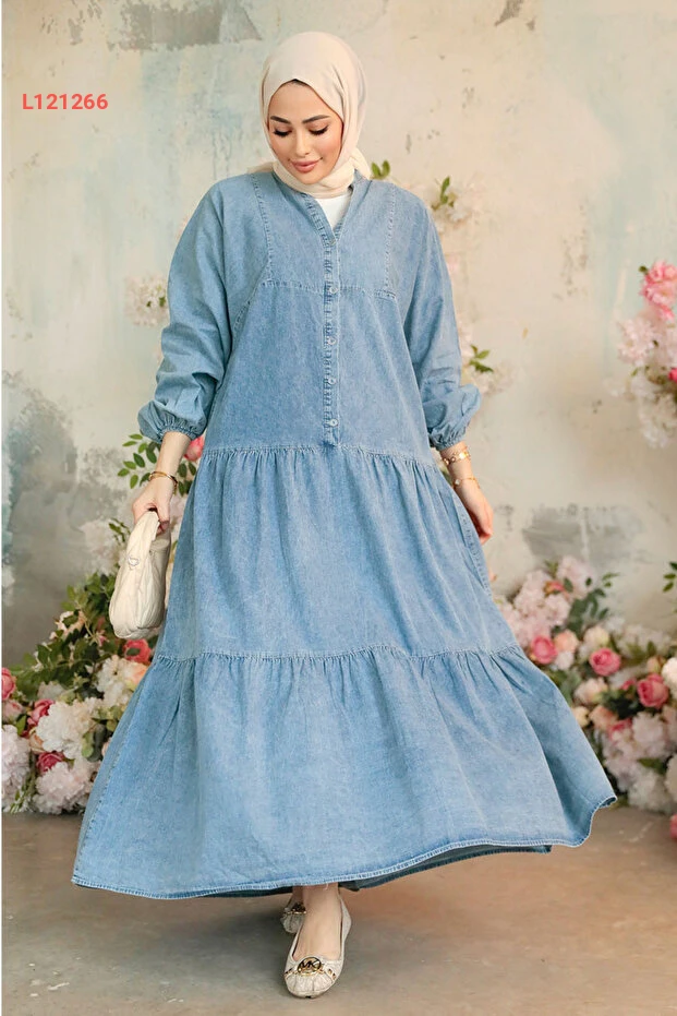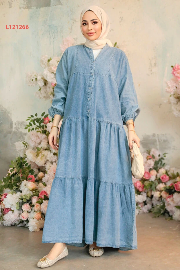 تألق في إطلالتك مع فستان "Neva Style Düğmeli Mavi Tesettür Kot Elbise 10622M"، حيث يجمع بين الأناقة والراحة بشكل مثالي. مصنوع من قماش جينز عالي الجودة، يتميز بتفاصيل زر أنيقة، مما يمنحك مظهرًا عصريًا مع الحفاظ على حشمة التصميم، مما يجعله خيارًا مثاليًا لكل المناسبات.