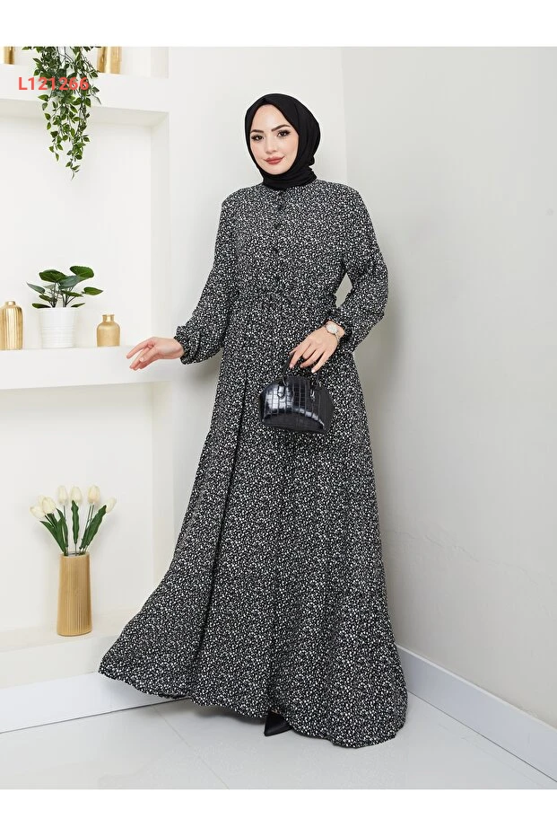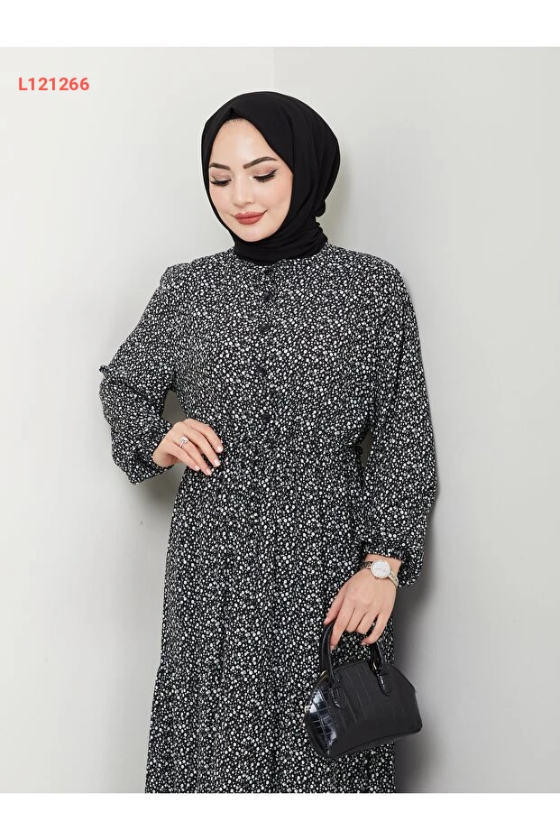 استعدي للتألق مع فستان نفايلا مودا المزين بتفاصيل الأزرار الرقيقة والطبعة الزهرية الجذابة! مصنوع من قماش الفيسكون الناعم الذي يمنحك راحة استثنائية وأناقة لا مثيل لها، ما يجعله مثاليًا للمناسبات اليومية والسهرات. اختاري هذا الفستان الأسود ليضيف لمسة من الجمال والفخامة إلى خزانة ملابسك!