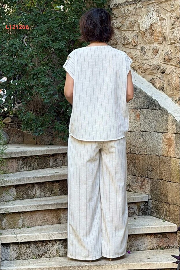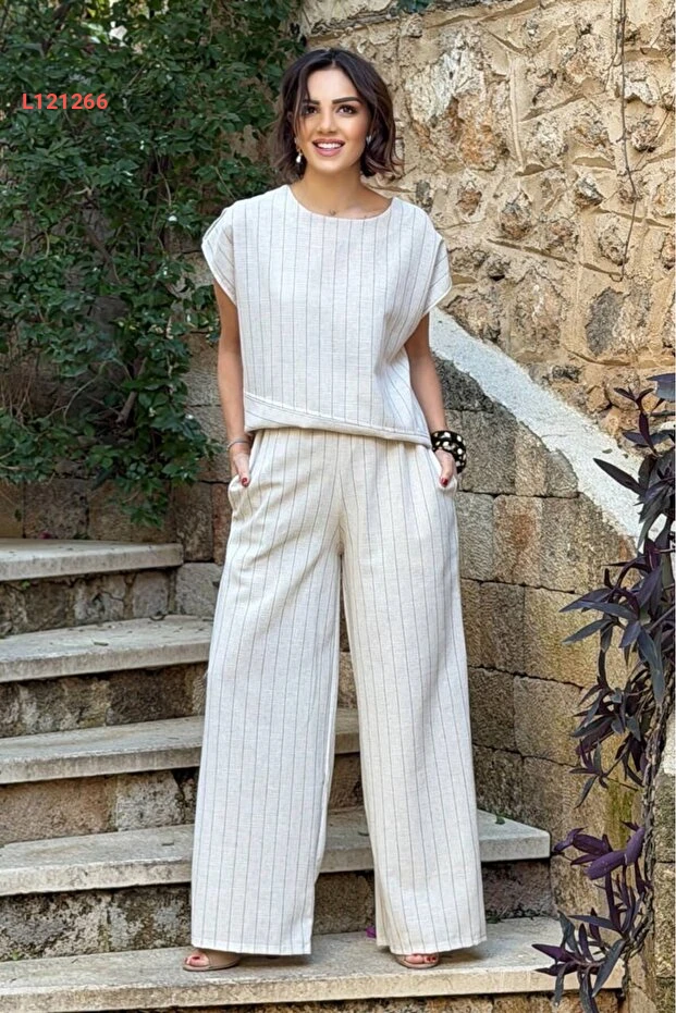 ارتقِ بأناقتك مع طقم نيفين كايا مودا ذو الخطوط السوداء المصنوعة من الكتان الفاخر. يجمع هذا الطقم بين الراحة والستايل العصري، مما يجعله مثاليًا لأيامك العصرية أو السهرات المميزة. استمتع بإطلالة أنيقة تجمع بين البساطة والجاذبية مع كل تفصيلة.