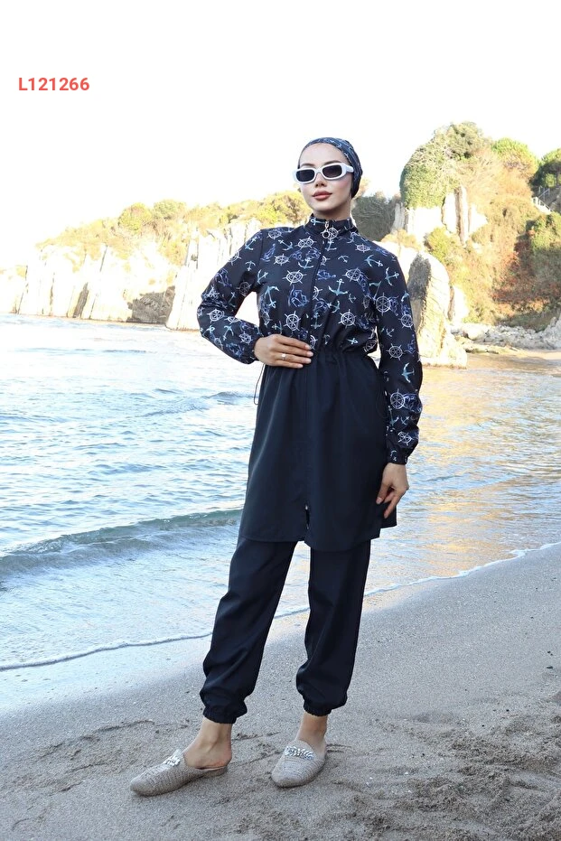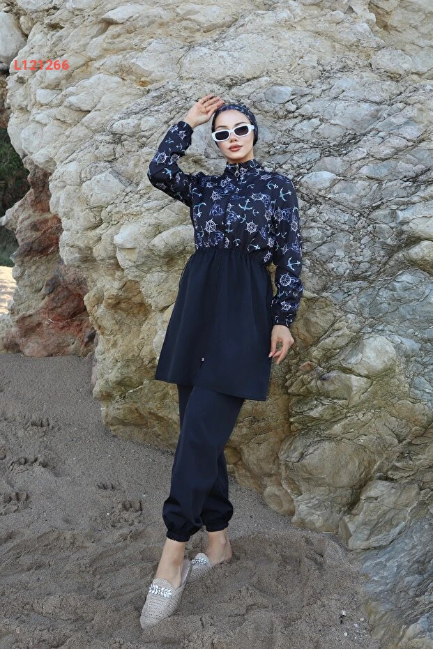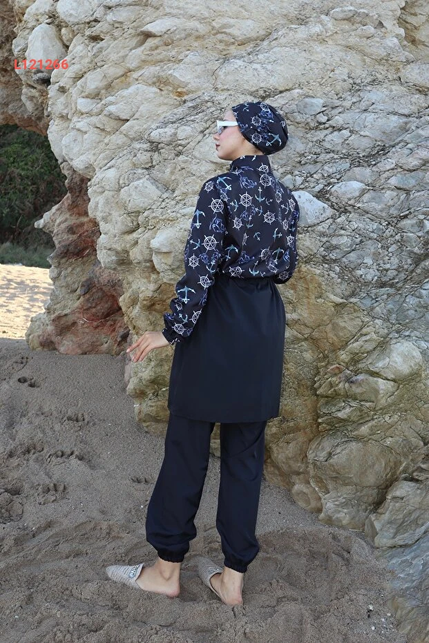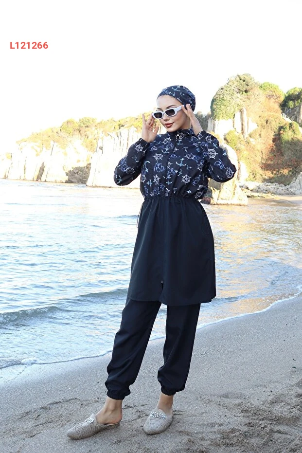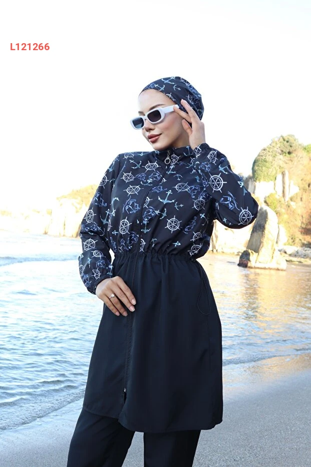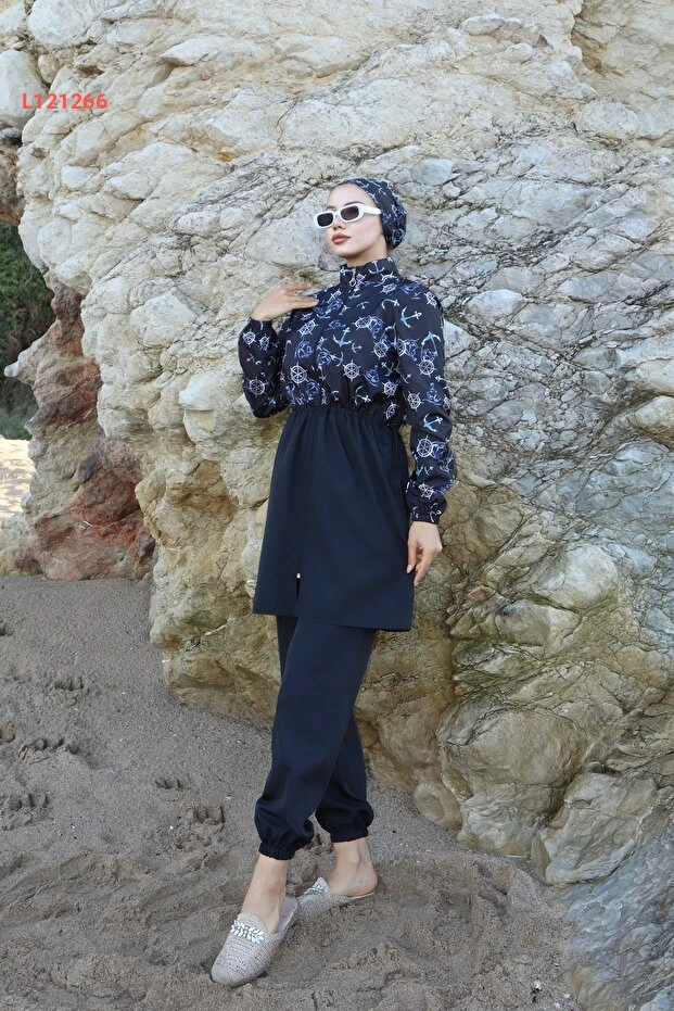 استمتع بأناقة وحماية مثالية مع مجموعة التستر المائي الجديدة: "Çapa Desenli Beli Ayarlanabilir Lastikli Tam Kapalı Hijab Tesettür Mayo". تتميز هذه المجموعة بتصميمها العصري الذي يجمع بين اللونين الأزرق والأسود، بالإضافة إلى الخامات عالية الجودة التي توفر الراحة والمرونة. مع حزام قابل للتعديل، يمكنك ضمان ملاءمة مثالية تناسب كل الأجساد، مما يجعلها الخيار الأمثل للسباحة والأنشطة المائية.