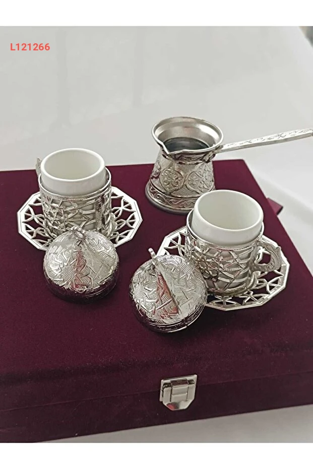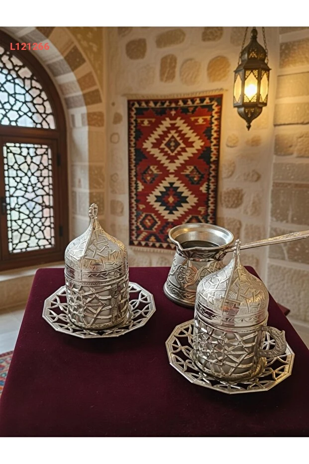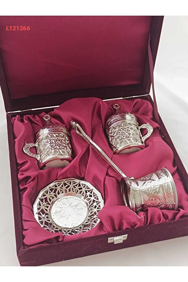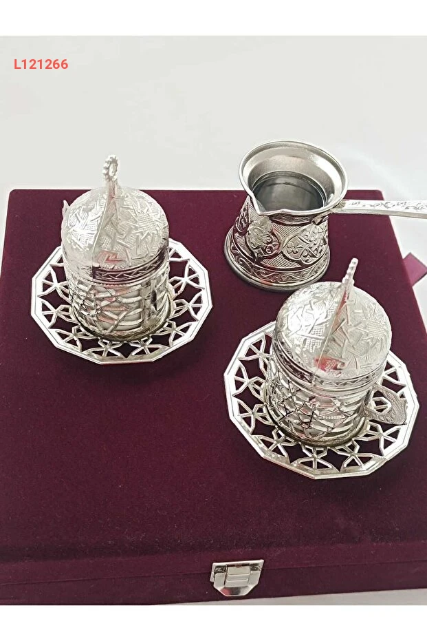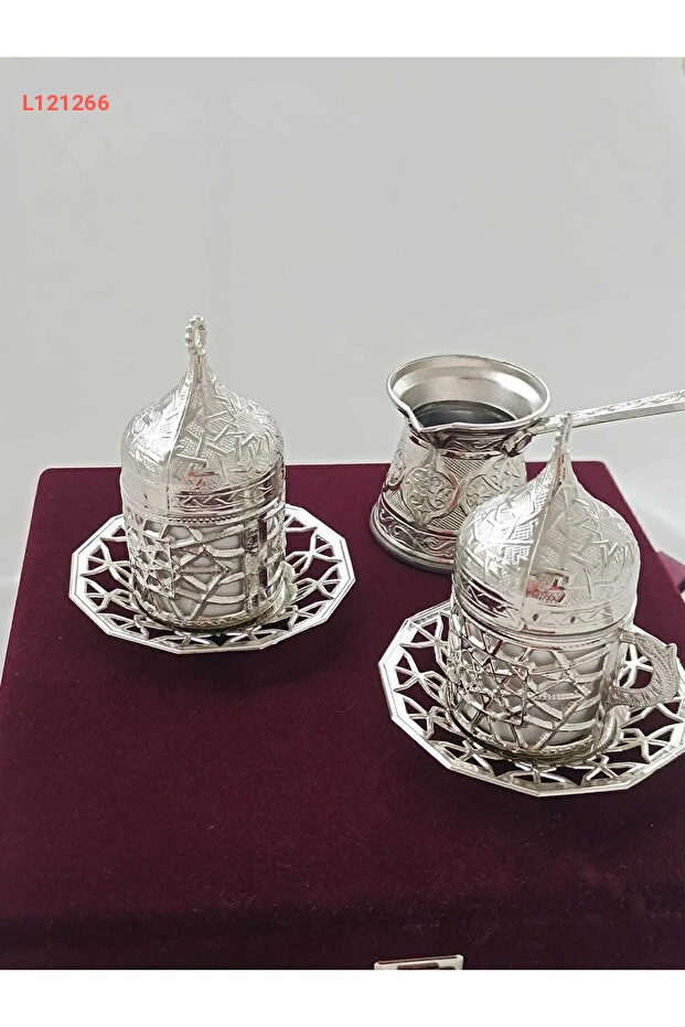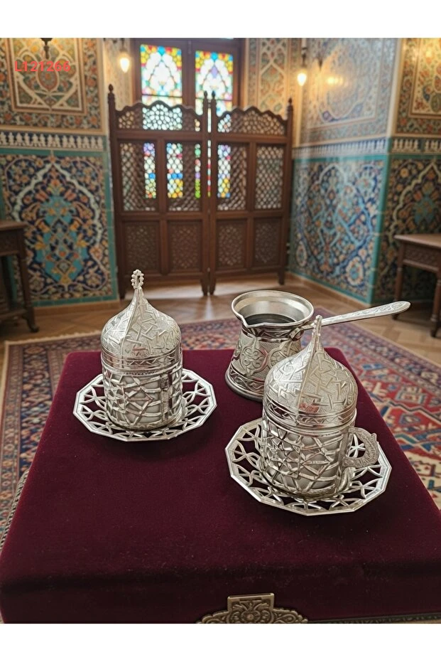 طقم فناجين قهوة نحاسية تقليدية مزدوجة مع صندوق مخملي - نيهال سؤدا