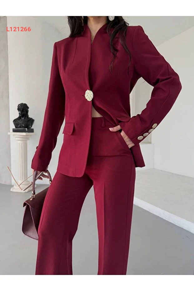 تألقي مع طقم NILOO الأنيق الذي يتكون من سترة بليزر بزر كبير وسروال متناسق، ليعكس أسلوبك العصري بكل أناقة. مصمم من خامات عالية الجودة، يوفر لك الراحة والمرونة في كل حركة، مما يجعله الخيار المثالي لأيام العمل والمناسبات الخاصة. اجعلي كل إطلالة لك مميزة ولا تُنسى مع هذا الطقم الرائع!