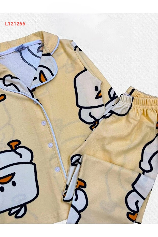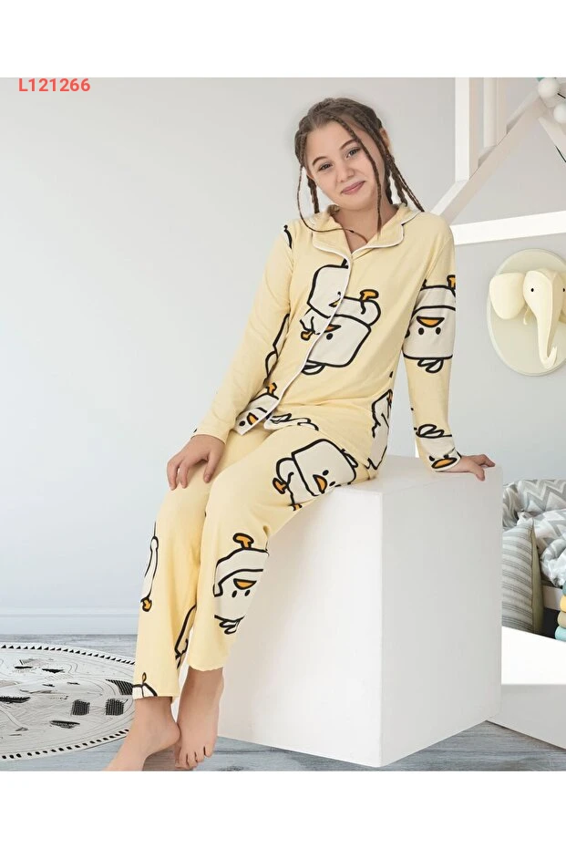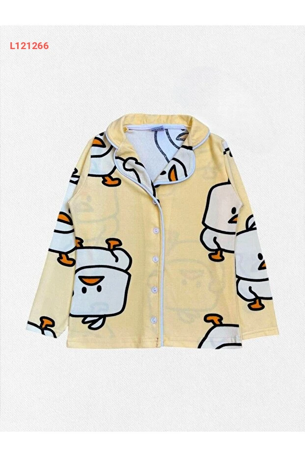 اكتشفي الراحة والأناقة مع بيجامة Nilsen للأطفال، المصنوعة من قماش القطن الناعمة، والمعزّزة بتصميم مبهج يتضمن رسومات دجاجة صفراء لطيفة. تأتي مع حواف بيضاء وتفاصيل جميلة لتعطي إطلالة رائعة أثناء النوم، مما يجعلها الخيار المثالي لليالي الهادئة والمرحة في آن واحد!