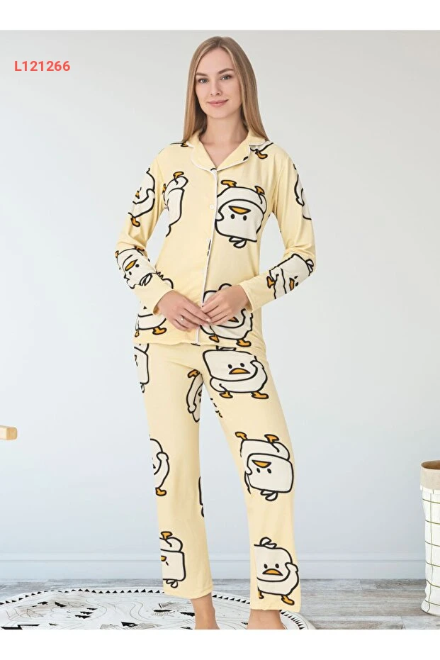بيجامة بكم طويل للأطفال من نيلسن بتصميم جميل للدجاجة الصفراء مع حزام للنوم من قماش قطني ناعم