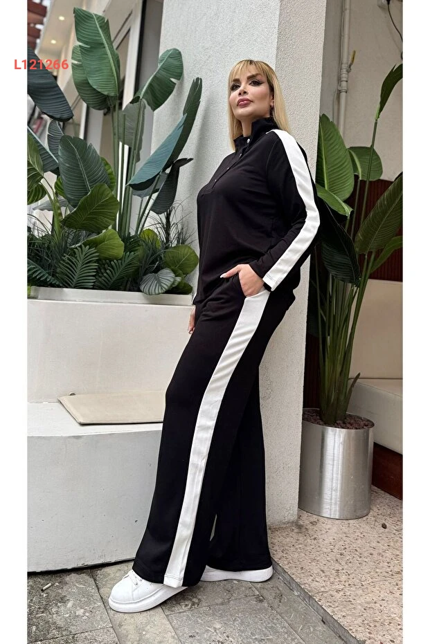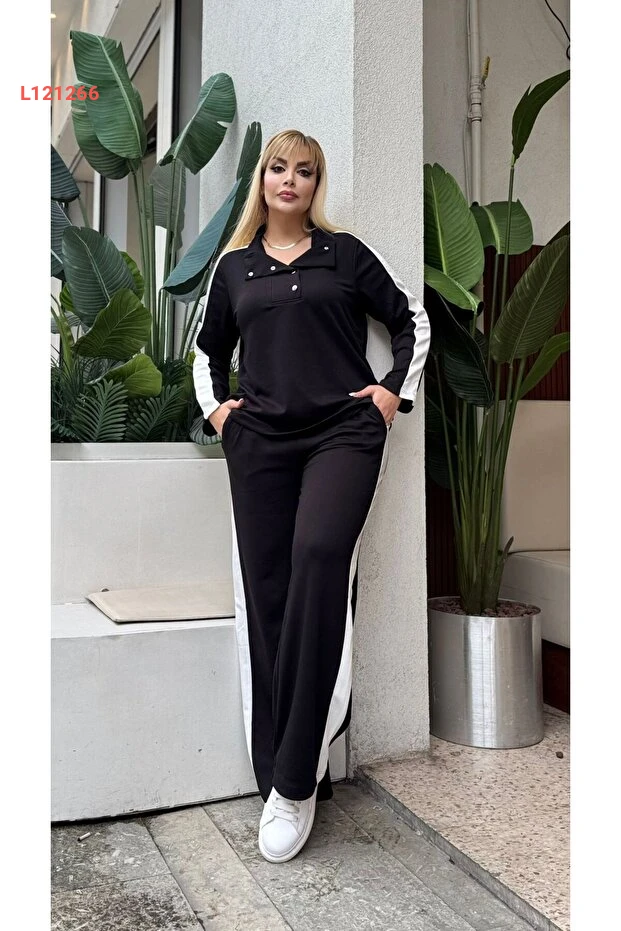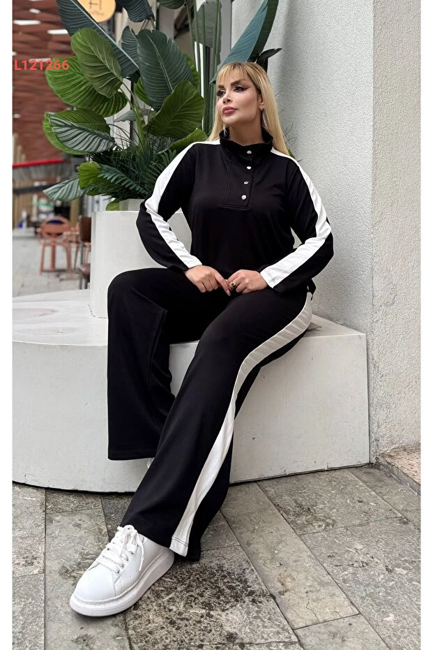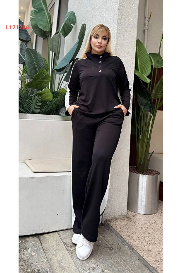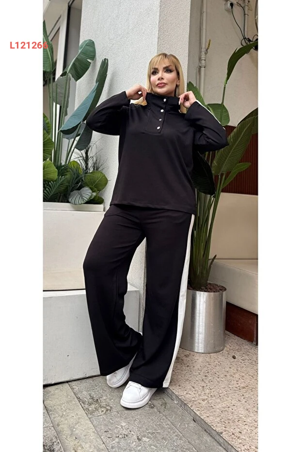 طقم رياضي نسائي كبير الحجم بأزرار بتفاصيل جذابة وقبة مائلة من قماش مودال ناعم ومرن