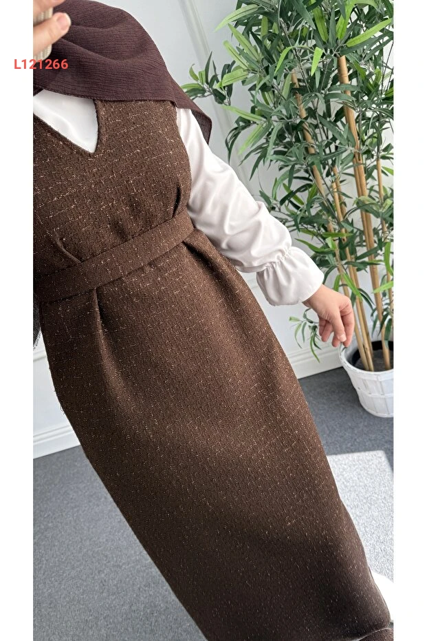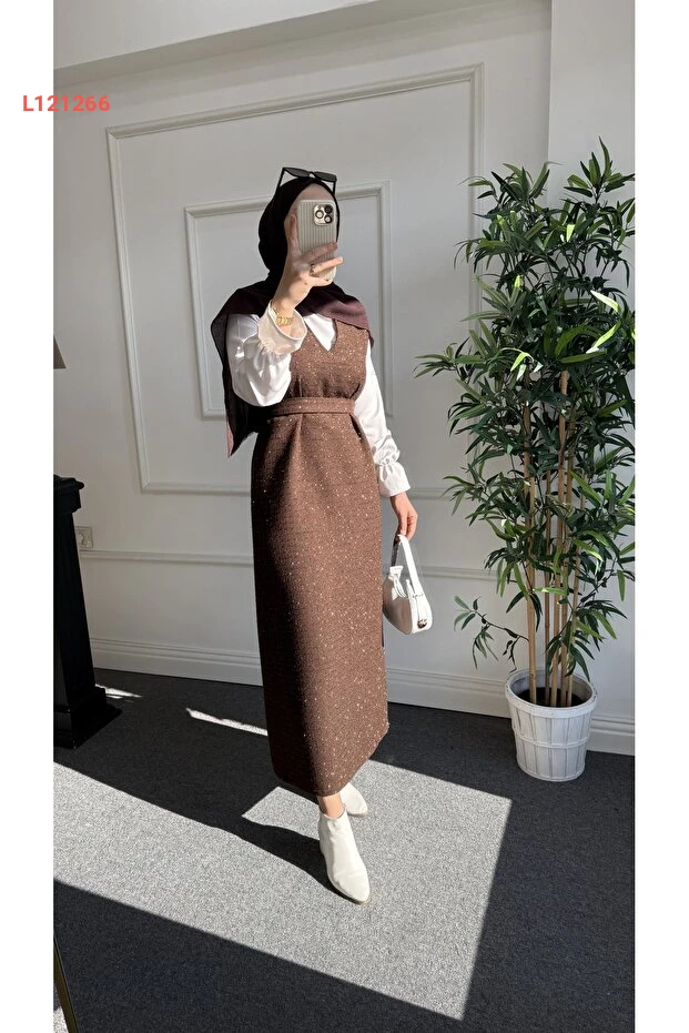 اكتشفي أناقتك مع جيل نيسا نالبانتوغلو بالتفاصيل الذهبية اللامعة. يأتي هذا الفستان المصنوع من قماش التويف الفاخر بلون بني جذاب، مما يضمن لكِ إطلالة مميزة تجمع بين الأناقة والراحة. تصميمه العصري مع لمسات من البريق يجعله الخيار المثالي للمناسبات الخاصة أو الخروجات اليومية.