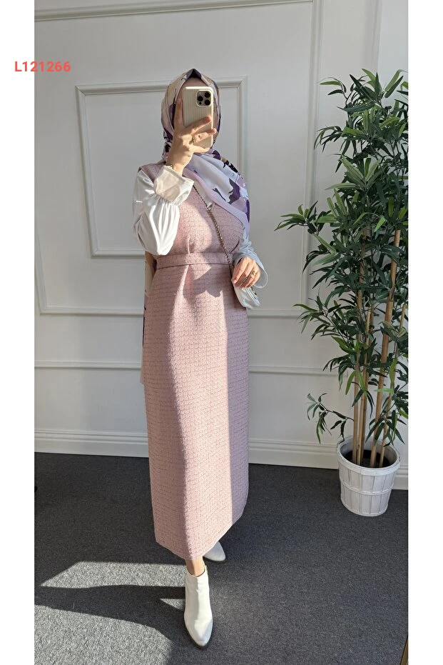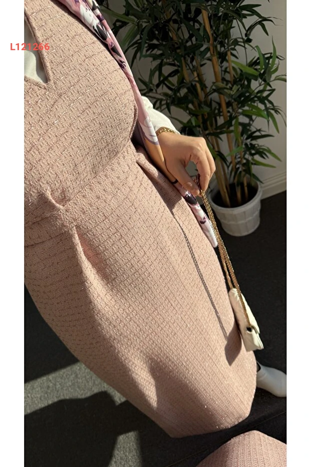 اكتشفي أناقتك مع جيل "نيسة نالبانتوغلو" بتصميمها الأنيق بلون الورد البودرة اللامع. تتميز بتفاصيل رائعة من قماش التويد الفاخر، مما يمنحك شعوراً بالراحة والفخامة في كل مناسبة. اجعلي إطلالتك مميزة وجذابة مع هذا الجيل المثالي للتنسيق في سهراتك ومناسباتك الخاصة.