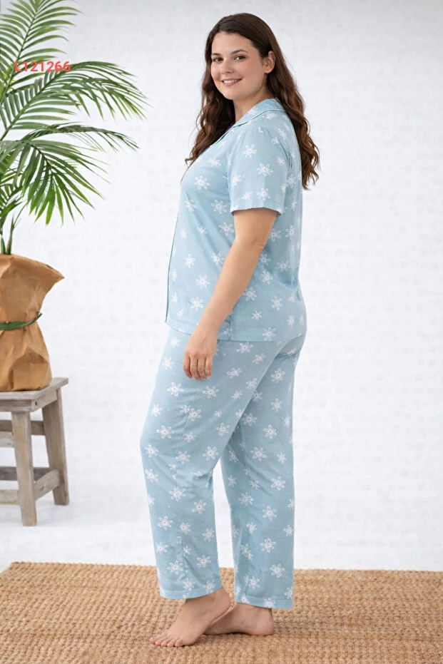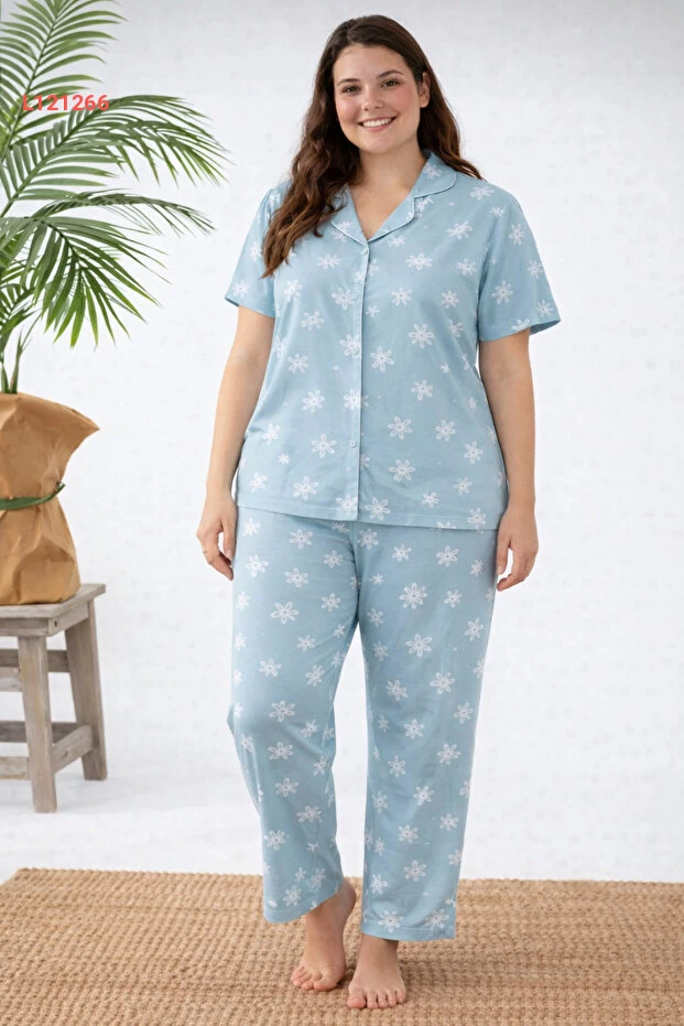 طقم بيجامة قميص ميلان قصير الأكمام للنساء ذوات الحجم الكبير - مجموعة الأمهات الشابات