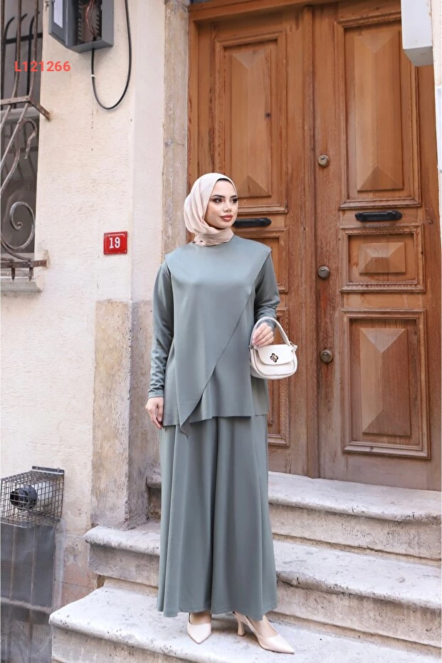 استمتع بأناقة لا تُضاهى مع طقم نيسوم مودا بتصميمه العصري والمبتكر. مصنوع من قماش مودال الفاخر، يوفر لك راحة استثنائية ونعومة لمسة مريحة على البشرة، بينما يمنحك التصميم المتقاطع لمسة جمالية فريدة تناسب مختلف المناسبات. اجعلي كل يوم مميزًا بأناقتك مع هذا الطقم الرائع!