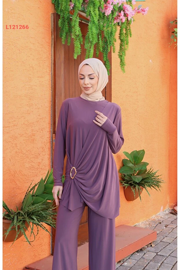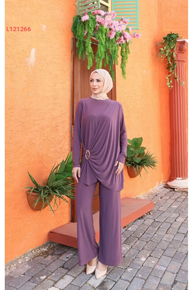 استمتع بأناقة لا مثيل لها مع طقم NİSUM MODA المكون من بنطال للسيدة مع جانب مزخرف برباط، الذي يجمع بين الراحة والتميز. مصنوع من أقمشة عالية الجودة، يوفر لك إحساساً بالراحة طوال اليوم، بينما يكمل تصميمه العصري إطلالتك في كل المناسبات. تميّزي وتألقى بأسلوب فريد يجذب الأنظار!