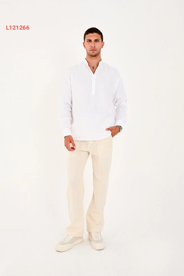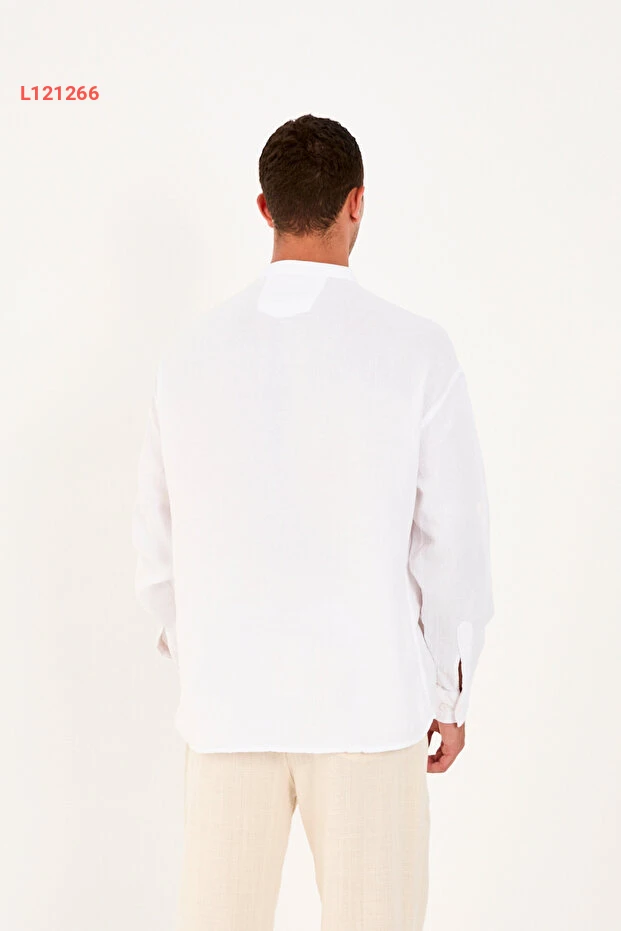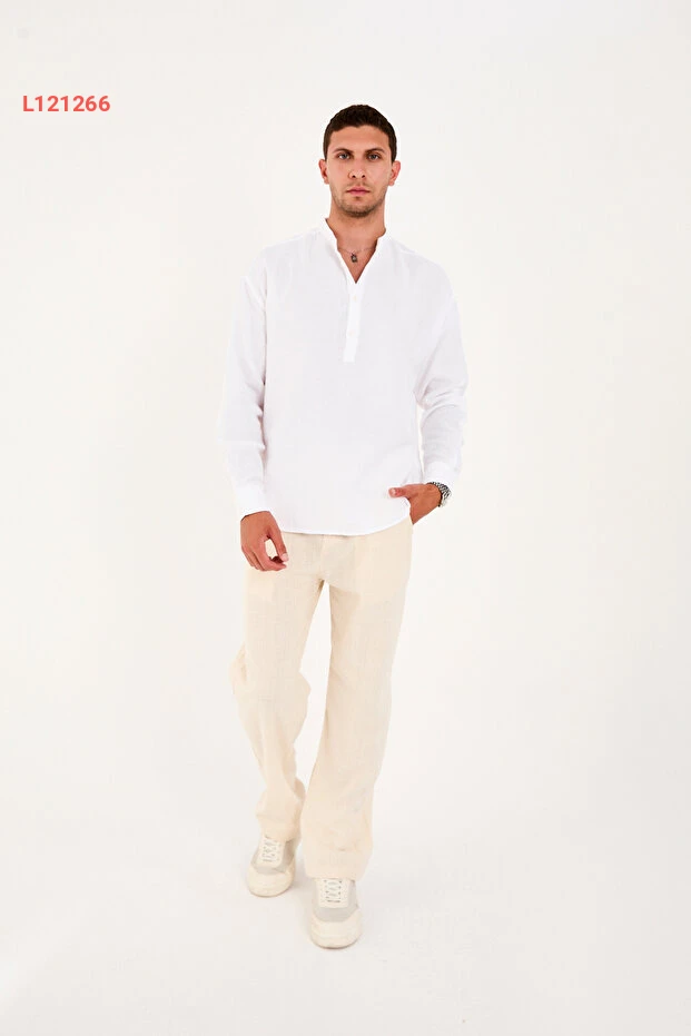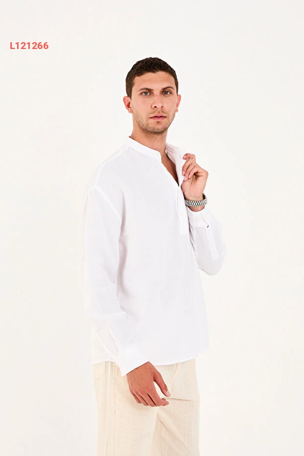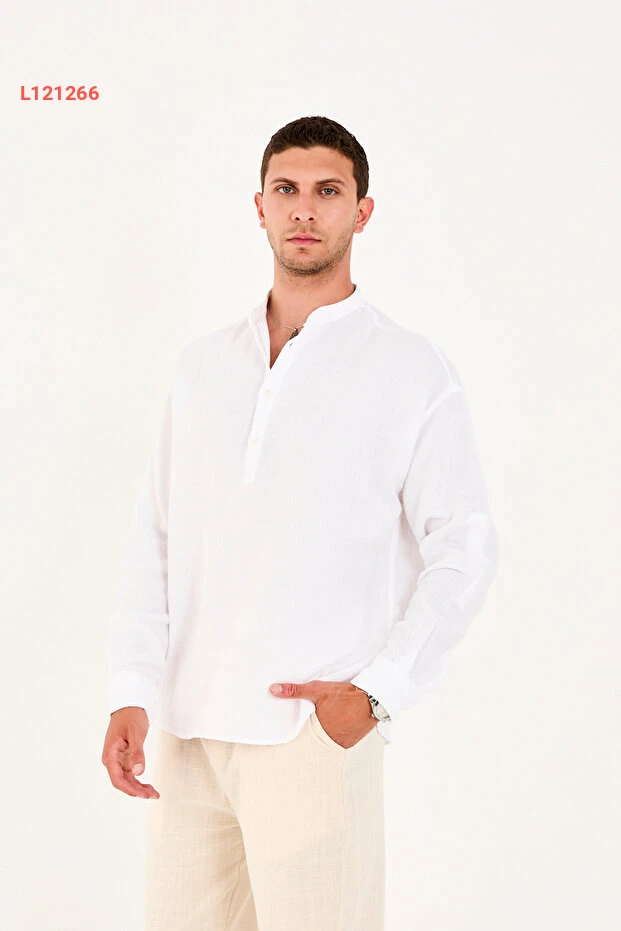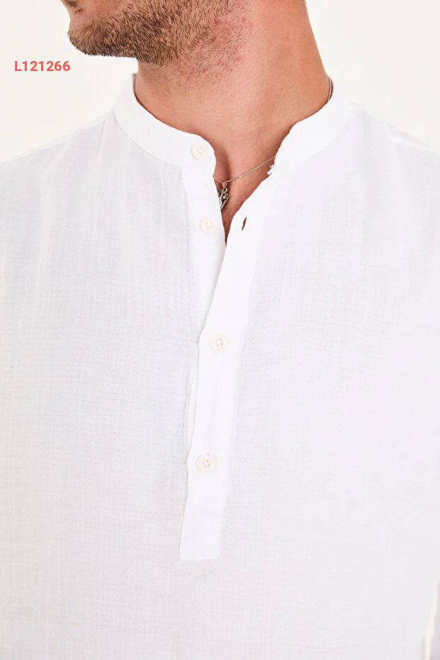 قميص نصف مفتوح بياقة حاكم من 100% قطن موسلين بتصميم مريح للرجال