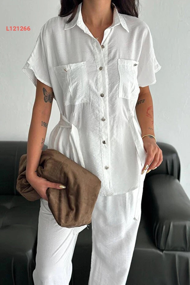 اختبر أناقتك مع طقم القميص القصير الأكمام Noa Noa، الذي يتميز بتفاصيل الحزام الجذابة التي تضفي لمسة عصرية على مظهرك. مصنوع من خامات عالية الجودة، يوفر لك راحة مثالية وأناقة لا تضاهى، مما يجعله خيارًا مثاليًا لكل المناسبات. ارتديها وتميزي بإطلالة متجددة وواثقة!