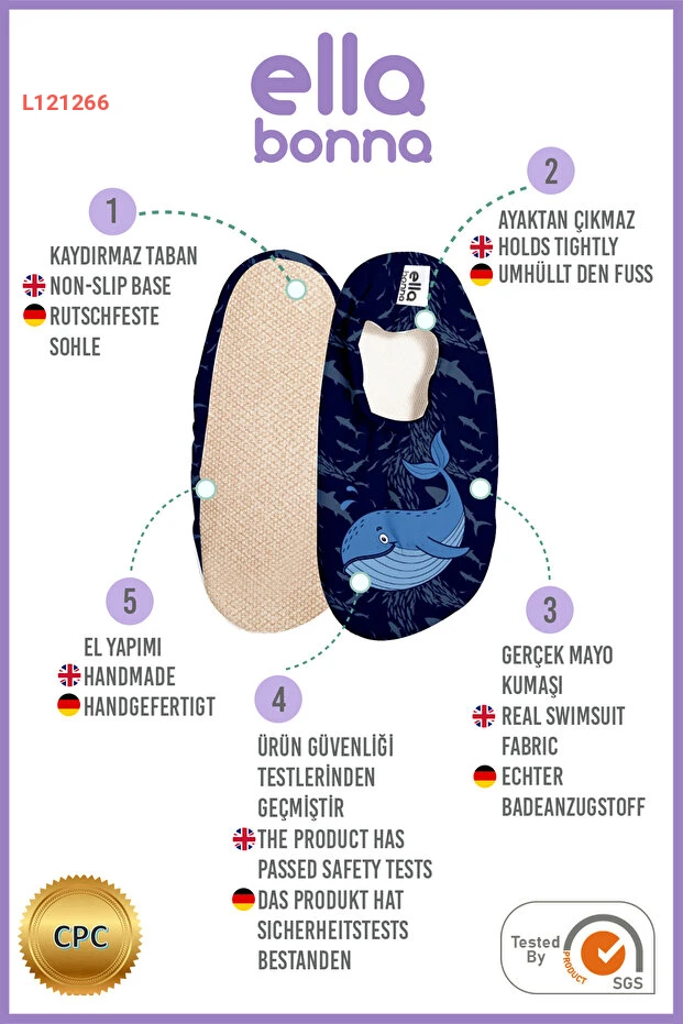 استمتع بوقت المرح في الماء مع حذاء إيلّا بونا المائي للأطفال، الذي يتميز بقاعدة مضادة للانزلاق تضمن سلامة الصغار أثناء اللعب في الشاطئ أو المسبح. بتصميمه الجذاب على شكل دب، يجمع هذا الحذاء بين الراحة والأناقة، مما يجعله الخيار المثالي لعطلتك الصيفية!