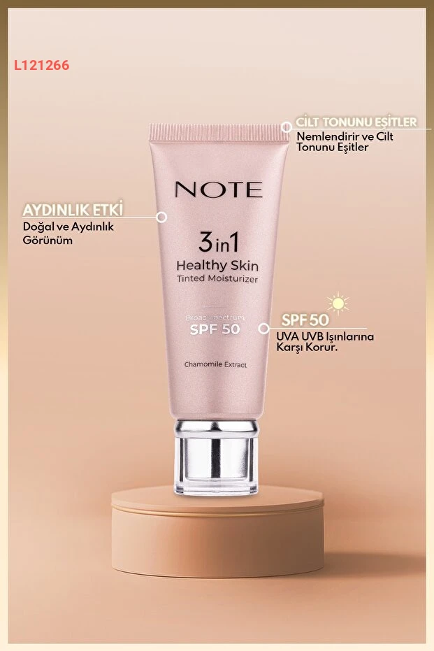 اجعل بشرتك تتألق مع مرطب Note Cosmetics 3 في 1 الصحي! يوفر هذا الكريم الملون ذو الدرجة الفاتحة تغطية مثالية توازن لون بشرتك ويعزز إشراقتها، مع حماية فعالة من أشعة الشمس بفضل SPF 50. احصلي على بشرة ناعمة ومتألقة طوال اليوم مع ترطيب يدوم طويلاً.