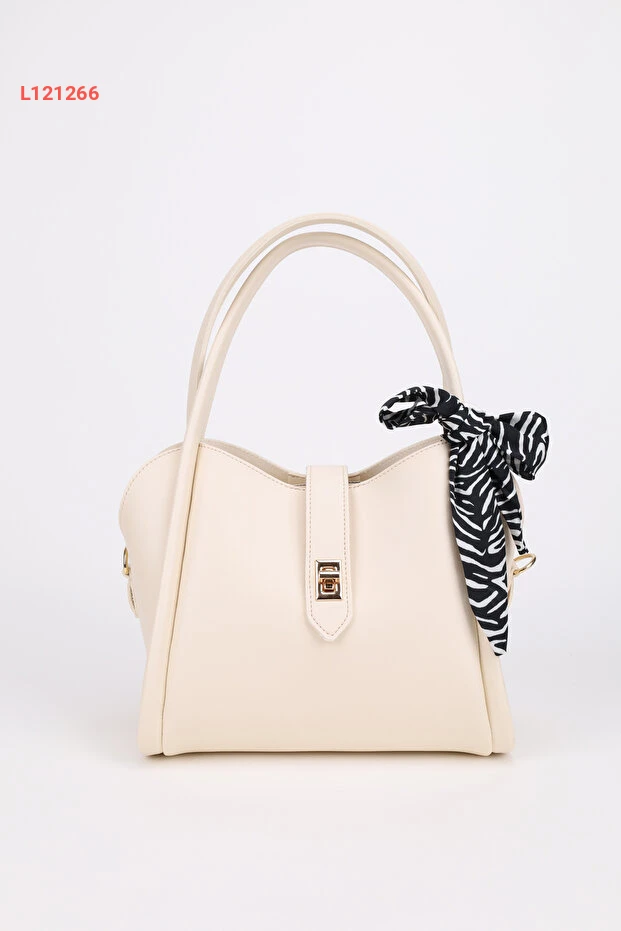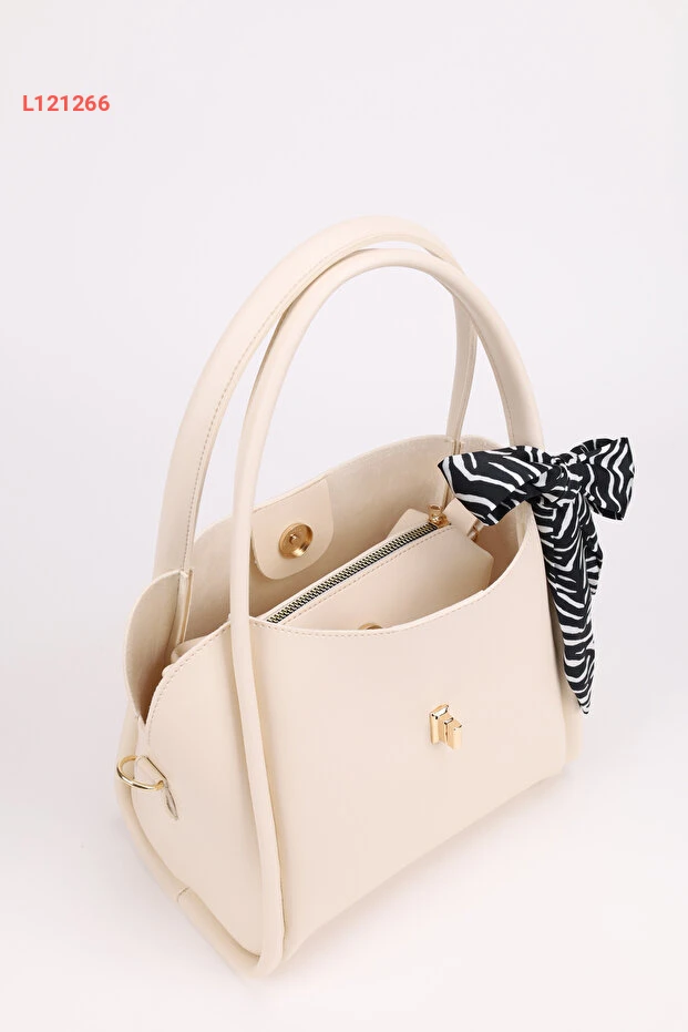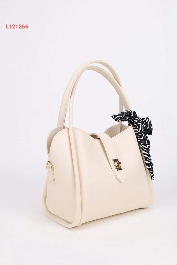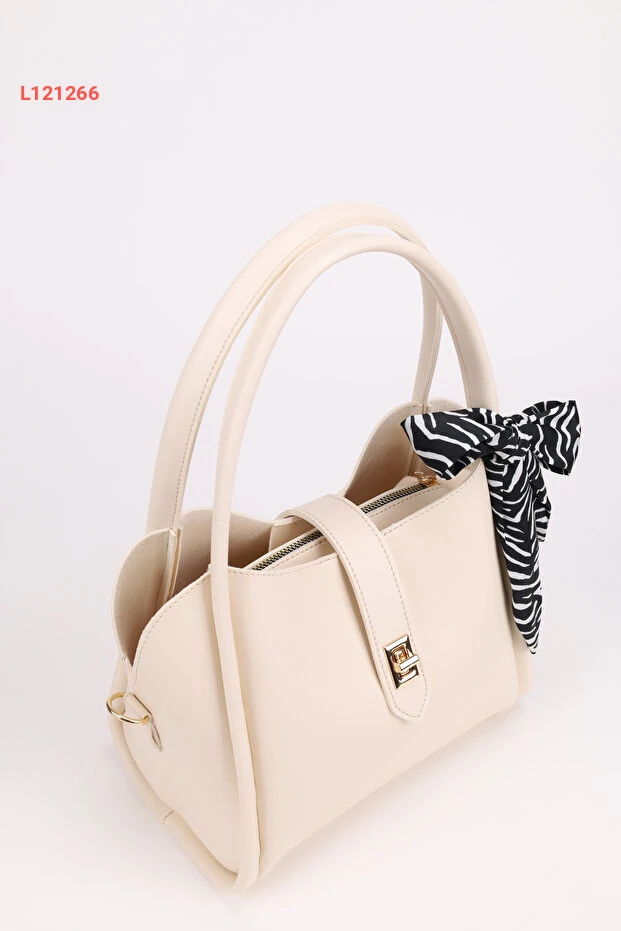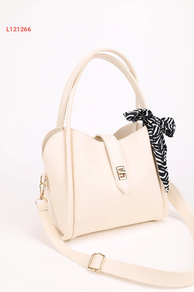 حقيبة نسائية بتصميم ثلاثي الأقسام مع تفاصيل قفل وقابلة للإزالة - كريمية اللون